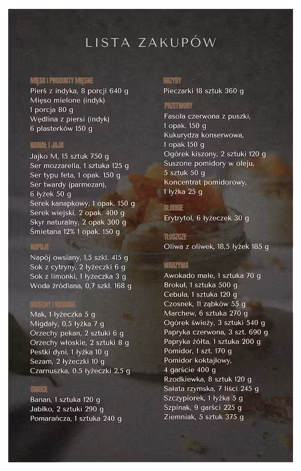 🌸 marnowania produktów żywnościowych. Lista zakupów jest przejrzysta, a produkty w całości są wykorzystane na tydzień